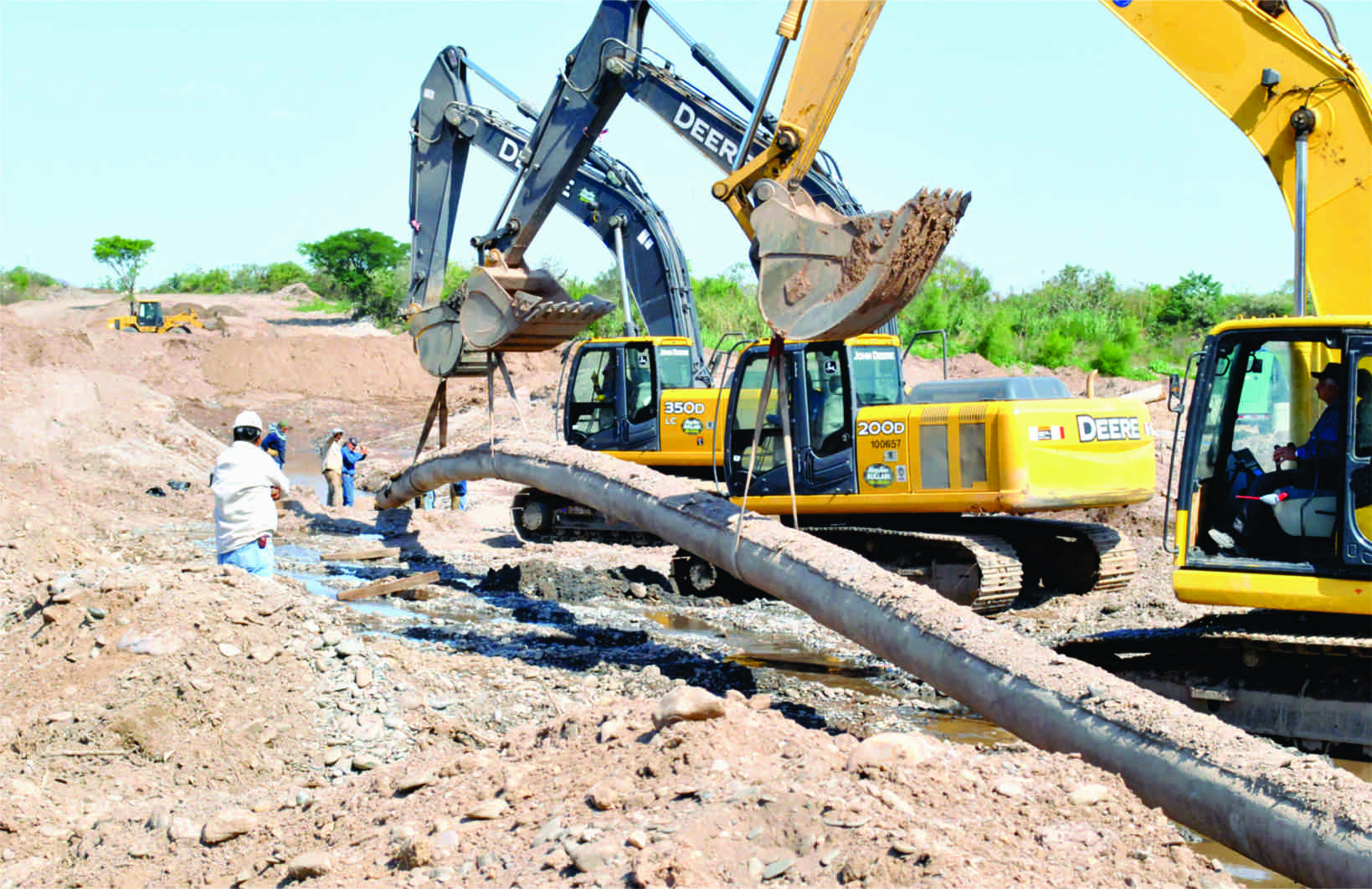 Desvió del Río Salí con el uso de equipo pesado (Retroexcavadoras, Pala cargadora). Trabajo de soldadura en cañería de acero al carbono diámetro 12”. Radiografiado al 100% de 500 pulgadas. Prueba Hidráulica, Gunitado de cañería con hormigón H17.Bajada y posicionamiento de cañería.Empalme con márgenes Norte y Sur.Tapada y recomposición.